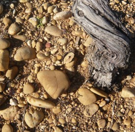 Le sol de galets roulés appelé « grès », sur des marnes argilo-calcaires, contribue à l’équilibre du vin. Les galets protègent le sol de l’évaporation et apportent une touche de fraîcheur et de minéralité dans la dégustation.