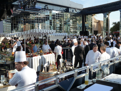 Démarré le toit fermé, la salle se découvre pour laisser apparaître le soleil, face à la mer, c’est un endroit de rêve qui s’offre aux chefs.