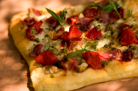 Délayer la levure avec un peu d’eau tiède. Rassembler dans un récipient la farine, le sel, le sucre et l’huile d’olive. Ajouter la levure délayée et l’eau restante. Travailler la pâte pour la rendre bien homogène. La laisser reposer 30 minutes à température ambiante couverte d’un linge. Etaler la pâte et la déposer sur une plaque de cuisson. La laisser gonfler pendant 15 minutes environ.