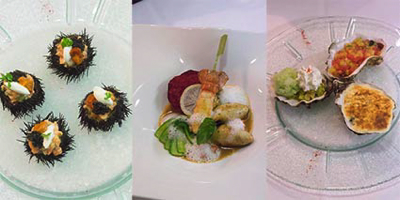 Les petits oursins farcis d’une salade de crustacés avec leur crème légère au caviar osciètre et corail d’oursin comme les huîtres de Tabouriech en trois préparations (chaudes en gratin de champignons, en tartare au granité de pomme, nature aux agrumes et zestes de citron vert) témoignaient d’une belle fraîcheur iodée. Les petits encornets de Méditerranée farcis de ratatouille et de langoustine, avec une salade courgette, une queue de langoustine rôtie cuite à la seconde près, relevée d’une vinaigrette tiède au jus de viande et d’huile de noix reflétaient pile poil l’esprit du pays, dans ses atours vifs et joliment pimentés.