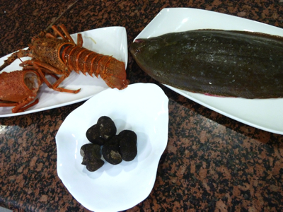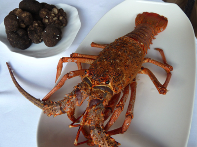 Confectionner un court bouillon classique de haut goût. Cuire la langouste 18 minutes, la rafraîchir très rapidement, l’égoutter et la saigner pour lui retirer tout le liquide de cuisson qu’elle contient à l’intérieur. La décortiquer en prenant soin de ne pas abîmer la queue, la réserver. Toutes les autres parures de la langouste seront soigneusement réservées pour un usage ultérieur. Habiller les soles et lever les filets, les passer très rapidement sous une eau glacée, les aplatir côté peau d’un léger coup de batte ou les piquer à l’aide d’un bouchon planté d’aiguilles, afin que les filets de sole ne se déforme pas à la cuisson, réserver au frais.