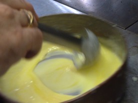 Monter la sauce restante avec le dernier tiers du beurre, terminer le nappage avec cette sauce afin d’obtenir un glaçage doré sous la salamandre en finition.