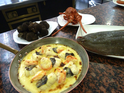 Après qu’on eut pris nos manteaux pour le vestiaire,Roger arrivait à notre table: »Qu’est ce qui vous ferait plaisir Monsieur C….? » Notre choix est fait : Foie gras en terrine, bien sûr, le gratin de soles et de langoustes Georges et un soufflé au grand Marnier pour terminer. Roger nous conseillait – comme à chaque fois- un Meursault les Genevrières…..C’était dans les années 1970! Ma femme était resplendissante » Souvenir, souvenir que me veux-tu? »Verlaine