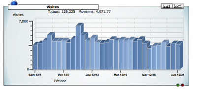Sur le mois de décembre 2012, vous avez été très nombreux à nous suivre, en moyenne 4 071 personnes à vous rendre sur le blog quotidiennement et donc 126 225 visites ont été enregistrées sur le mois.