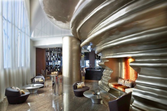 Astor Grill au St régis à Doha – L’entrée du restaurant a été designé par l’artiste anglais Tony Cragg. La salle de restaurant très chargée devrait beaucoup plaire à la clientèle du Moyen-Orient.