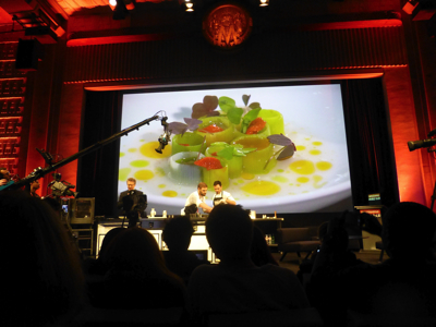 Ont défilé chefs étoilés consacrés d’ici et d’ailleurs, chefs talentueux étoilables de demain. Tous unis par la passion de la cuisine, le bonheur de se retrouver. Tous réunis par le fondateur Luc Dubanchet, brillamment assisté de l’adorable de disponibilité et gentillesse Justine Prot et les joliment bavards présentateurs Sébastien Demorand, Marie-Josée Fréchet, Bruno Verjus.