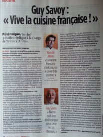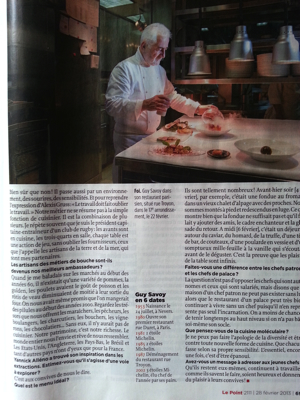 Cet article en a aussitôt déclenché deux autres dans les deux semaines qui ont suivies. Ce fut donc tout d’abord au chef Guy Savoy dans une forme de réponse intitulé – » Vive la cuisine Française « – de donner lui aussi son avis sur la cuisine française – ce qu’elle est, ce quelle représente – dans l’édition du 28 février.