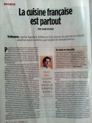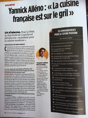 Sur le magazine Le Point du 21 février dernier sortait 4 pages consacrées au Chef Yannick Alléno sous le titre – » Le cuisine française est sur le grill « – loin d’être passé inaperçu dans l’univers des chefs, le débat était lancé - » État des lieux pour la cuisine française – Quel avenir pour la cuisine française ? « –