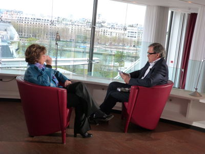 Une séance interview se déroule au restaurant Maison Blanche Avenue Montaigne en compagnie de Benoît Duquesne et Michèle Cotta….. Maison Blanche toujours au coeur de l’évènement.
