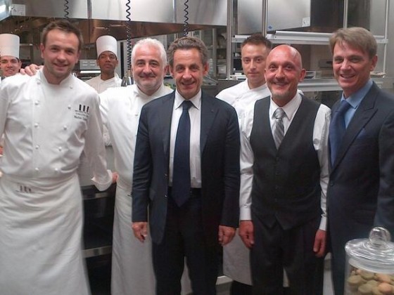 Repéré sur Twitter et repris par le Huffingtonpost, on apprend que l’ex Président de la République Française Nicolas Sarkozy ne manque pas lors de ses conférences à l’étranger de faire une halte chez les chefs français implantés à l’étranger. Très longtemps la réputation de l’ex chef de l’état le précédait, il se disait qu’il n’aimait pas la grande cuisine ni les vins… en tout cas visiblement il connait les bonnes adresses et où se trouvent les adresses des grands chefs français. Si le nouveau Président pouvait lui aussi donner l’exemple et fréquenter les grandes tables, ça contribuerait à promouvoir le savoir faire français en gastronomie !