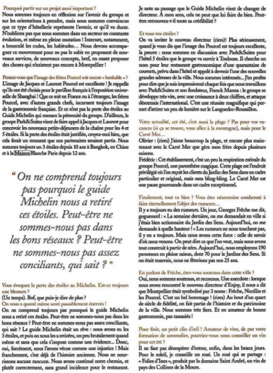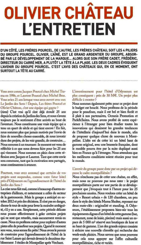 On parle beaucoup des frères Pourcel, mais ce que la plupart des gens ignorent, c’est que dans leurs ombres de jumeaux chefs, deux frères sont à leur côté depuis le début de l’aventure. Olivier Château troisième associé du groupe Pourcel depuis le premier jour, soit maintenant 25 ans, mais aussi Frédéric Château de quelques années son cadet qui lui aussi oeuvre à la réussite depuis 20 ans. Ils ont tous les deux quitté la Charente et Angoulême pour poser leurs valises à Montpellier, depuis ils sont devenus plus Montpelliérains que les vrais Montpelliérains. Olivier Château toujours les pieds sur terre, homme de réseau et d’influence a toujours su accompagner les jumeaux sur la route des affaires, quand à Frédéric homme de terrain, c’est auprès des clients et de ses équipes qu’il excelle. Le magazine économique 7Officiel les a réunis le temps d’une photo non loin de la plage Carré Mer qu’ils affectionnent particulièrement.