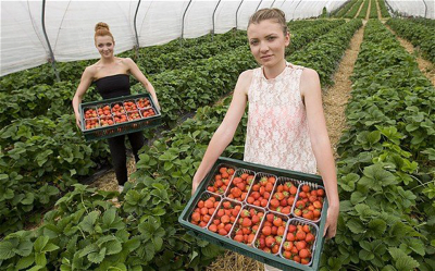 Depuis vingt ans, un heureux fournisseur détient en effet le monopole de la fraise officielle de Wimbledon : la Hugh Lowe Farm de Mereworth, dans le Kent. Là, trente-cinq cueilleurs spécialement réunis pour la durée du tournoi arpentent quotidiennement une section de l’exploitation allant de cinq à dix hectares, entièrement dédiée aux fraises de la variété Elsanta, lesquelles doivent passer avec succès le test de la couleur – un rouge écarlate uniformément réparti – et de la texture – une petite cuillère doit, dit-on, pouvoir les trancher sans les réduire en bouillie – avant d’être conditionnées.