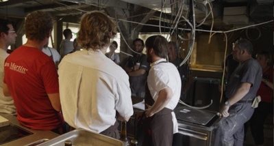 À Copenhague le Restaurant Noma du chef René Redzepi profite de l’été pour rénover totalement sa cuisine. Ces quelques images de la cuisine en cours de démolition ont circulaient sur le net.