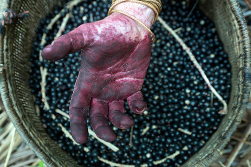 Ramassage des fruits açai, le jus est largement commercialisé aux États-unis, considéré comme un » superfood » sur place.