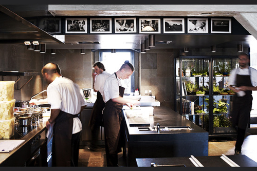 Le nouvel espace cuisine de 100 m2 a été pensé afin de se débarrasser de ce que le chef Redzepi appelle l’effet « cage d’acier» d’une cuisine tout en inox. Noma a privilégié des surfaces de pierre sombre ce qui crée une impression de réchauffement. L’utilisation de l’induction a permis de baisser la température réelle de la cuisine. Par contre en extérieur le chef à crée un espace grill qui devient de plus en plus tendance dans la nouvelle génération de chefs qui se remettent à cuire au feu de bois.