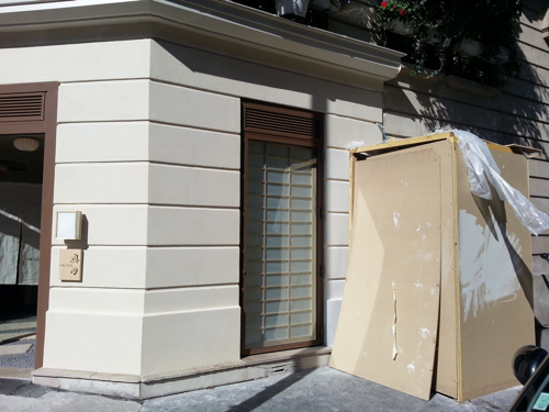 Notre envoyé spécial pour le blog F&S à Paris est passé hier devant le restaurant pour constater que les derniers préparatifs à l’ouverture sont prêts. Une personne en kimono traditionnel était déjà à l’accueil, et l’entrée typiquement japonaise avec les galets au sol, les panneaux de bois clairs et la petite fontaine sont en place, elle coule même !