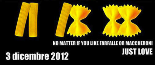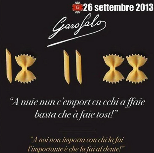 Le message est simple et résume bien le contenu du message de la concurrence : » L’important ce n’est pas avec qui vous les faites, l’important c’est de les faire al dente. » Et d’ajouter un peu plus bas sur l’image: » Peu importe si vous aimez les farfalles et ou les penne, l’important est de les aimer. »
