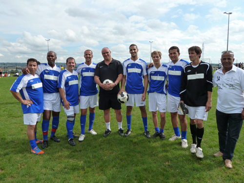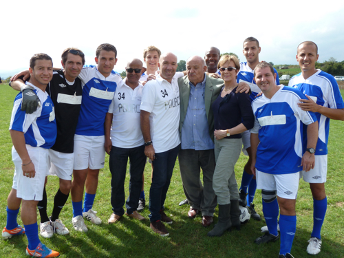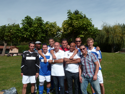 Momo, José, Jean-Charles, Barthelemy, Chakim, Kevin, Saïd, Frédéric et Farid, l’équipe des Frères Pourcel au complet autour de Éric Poulat arbitre de la rencontre, ex arbitre de la Coupe de Monde de Foot en 2006.