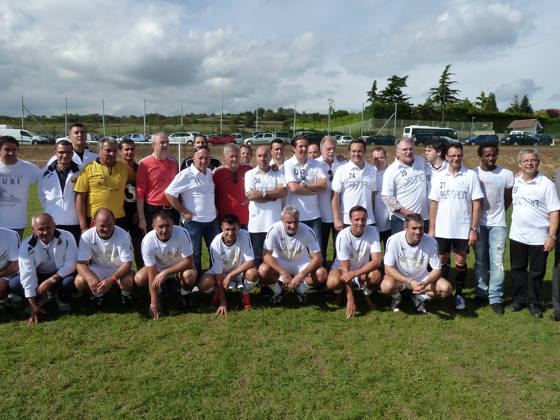 Les Chefs posaient ensuite devant l’équipe de vétérans du Stade Lyonnais après avoir participé à un match contre les représentants de chacun des restaurants.