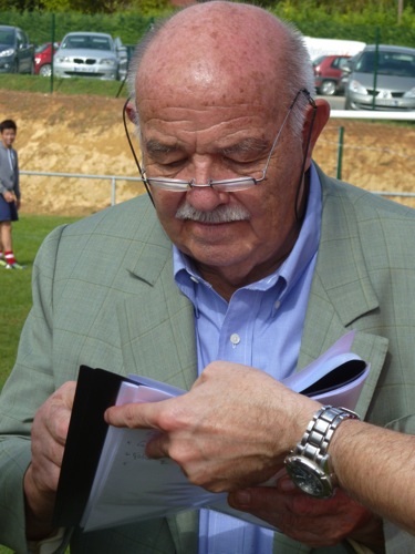 En rouge le chef Georges Blanc de Vonnas qui sur la touche motive l’équipe de son établissement qui se retrouve face à l’équipe des frères Pourcel.