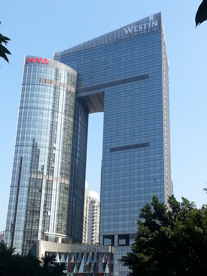 Côté hôtel, toutes les grandes chaînes hôtelières y sont installés avec des bâtiments tous aussi luxueux les uns que les autres, la bulle immobilière à permis toutes les folies, plusieurs des plus grands immeubles du monde ont été construits à Guangzhou.