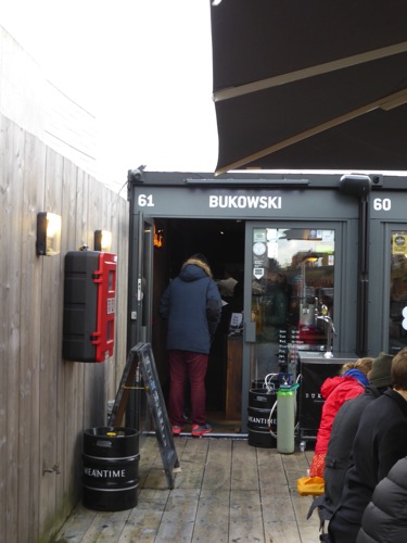 Appelés » Boxparck » ils sont superposés sur deux niveaux et sont emménagés comme de vrais commerces, avec même une allée centrale et un espace terrasse à l’étage. Cette terrasse chauffée offre 4 food truck, dont Bukowsky au numéro 61, là aussi burger d’anthologie. Vous passez votre commande, puis vous mangez à l’intérieur sur les quelques tables disposées le long du container ou à l’extérieur sur la terrasse.