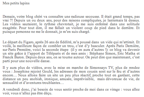 Pour annoncer ces changements, voilà ce que le journaliste vous écrivait sur son blog avant de le clôturer :