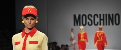 À Milan ce vendredi 21 février, se déroulait la Fashion Week. Le défilé Moschino a filé la métaphore culinaire en proposant des ensembles détournant le logo de McDonalds.