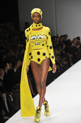 Cette initiative est celle du créateur américain Jeremy Scott. Loin de faire l’hunanimité, il a même divisé les observateurs. En charge de son premier show pour la maison italienne, le styliste a mis la barre particulièrement haut avec des robes de mariée imprimées de compositions nutritionnelles et une collection en hommage à Bob l’éponge.