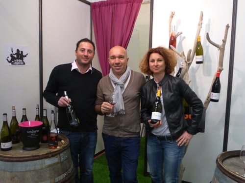 Dégustation sur le stand du Domaine de Valjulius de Julien Sarda à Corneilhan et découverte des vins » Les Terres D’Armelle » une jeune vigneronne Armelle Tafoiry dernièrement installée à Maraussan. Ici avec le chef Jacques Pourcel.