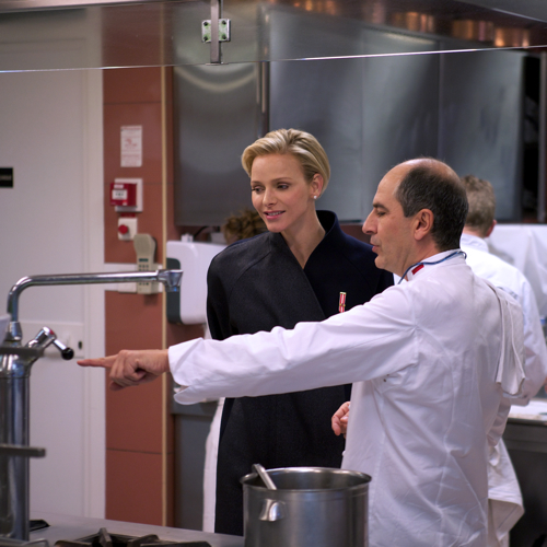 La Princesse Charlène et le chefs des cuisines du Palais Christian Garcia