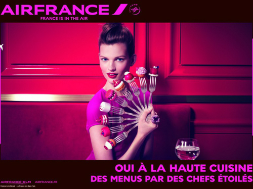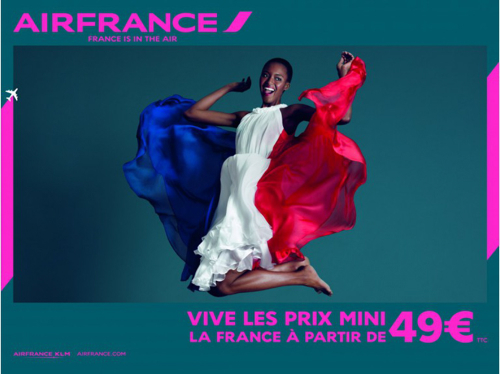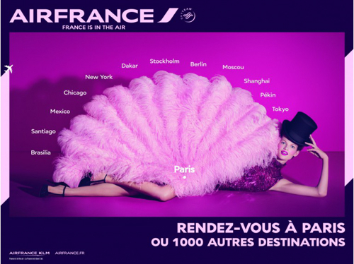 La « french touch » est même primordiale dans la stratégie de remontée en gamme de la compagnie. Air France a opté pour une signature clairement décalée, les slogans des nouveaux visuels jouent ainsi sur les clichés associés à la France. Et multiplient les clins d’œil au Moulin Rouge, à la Révolution Française, au Roi Soleil ou aux tables étoilées.