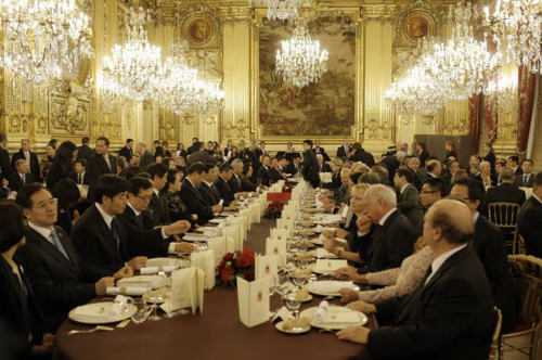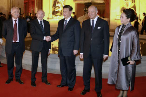 Lors de sa visite officielle qui se déroule en ce moment même à Paris, le Président Xi Jinping a commencé son voyage mardi soir par Lyon. Laurent Fabius, Ministre des Affaires étrangères et Gérard Collomb, Sénateur-maire de Lyon ont reçu à dîner le Président chinois Xi Jinping et son épouse, la cantatrice Peng Liyuan dans les grands salons de l’Hôtel de ville de Lyon, Capitale Mondiale de la Gastronomie.