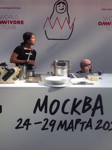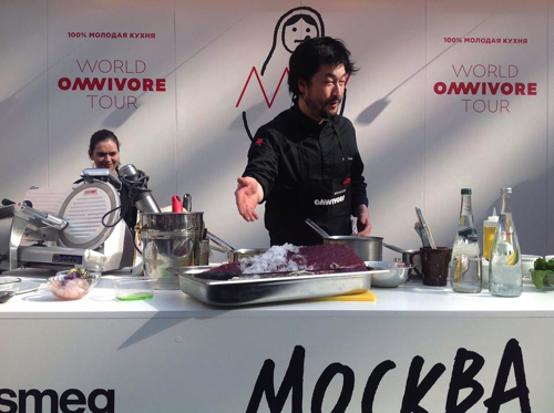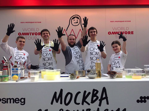 Après le beau succès de Omnivore World Tour à Paris au début du mois de mars, Omnivore World Tour 2014 s’est envolé quelques jours après pour la Russie. Direction Moscou pour les équipes de Luc Dubanchet qui du 24 au 29 mars ont organisé ce show culinaire 100 % Jeune Cuisine.