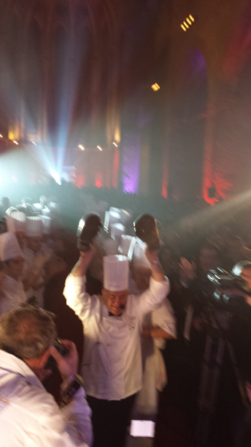 Sur la scène, devant sa famille et ses amis chefs de cuisine, il rappellera combien il est important de s’unir pour combattre la maladie, dans un silence impressionnant l’ensemble des invités sont touchés par l’émotion du témoignage. Parmi les chefs, quatre MOF ( Meilleurs Ouvriers de France ).