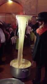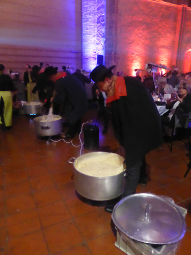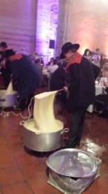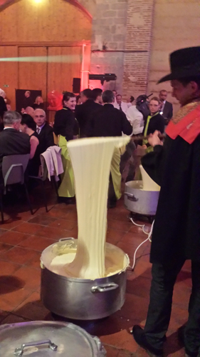 Ensuite se sont les Aveyronais qui ont débarqué des cuisines, des vrais de Laguiole, ils sont arrivés avec les grandes marmites et se sont mis à réaliser l’aligoté… à faire filer la purée… un vrai spectacle !
