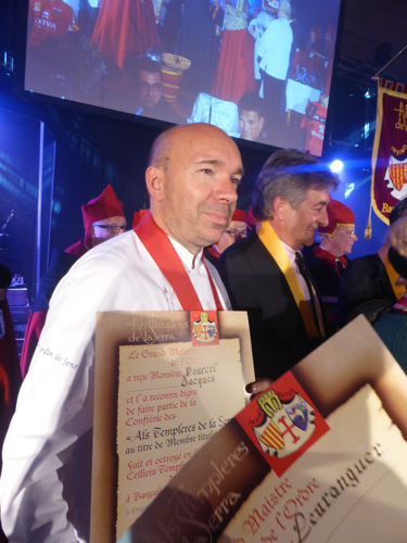 Et oui, il fallait bien terminer la soirée des chefs par une intronisation, – Als Templeres de la Serra – est une confrérie vineuse du terroir délimité des Crus de Banyuls et Collioure, mais aussi des grands vins et eaux de vie du Roussillon.