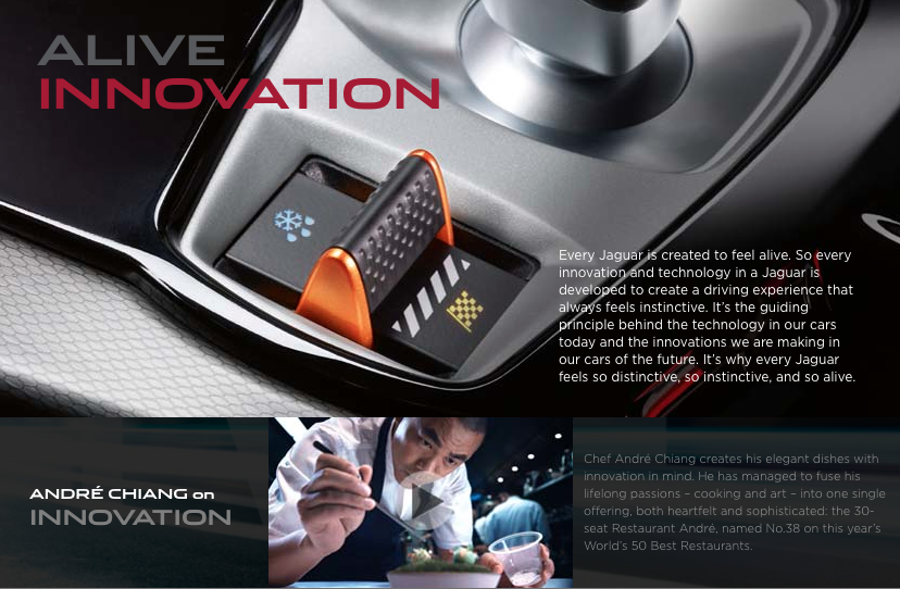 Retrouvez sur howaliveareyou.asia trois vidéos de créateurs collant aux valeurs de Jaguar, le cinéaste Eric Khoo, le violoniste Min Lee et le chef André Chiang.