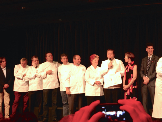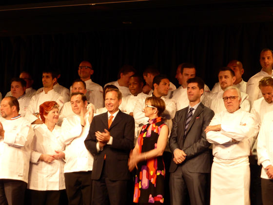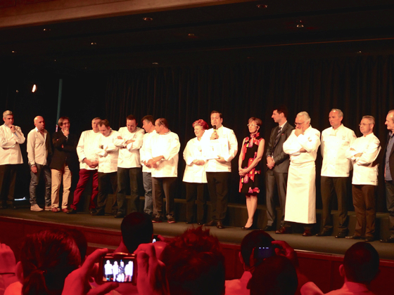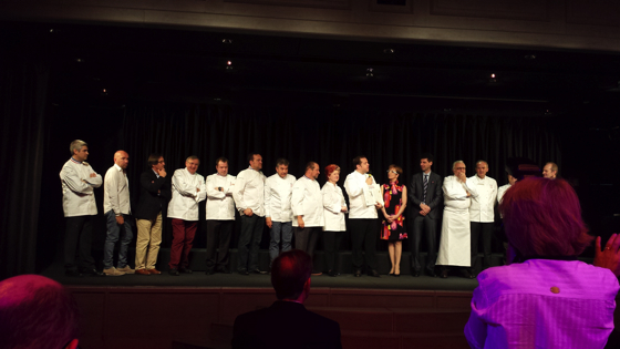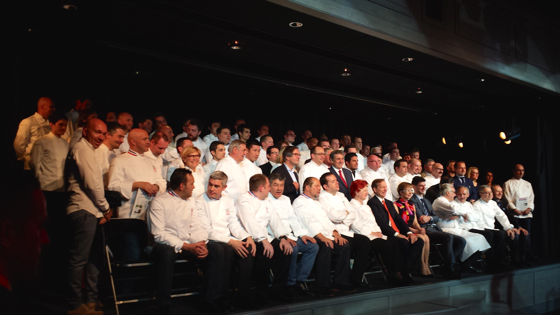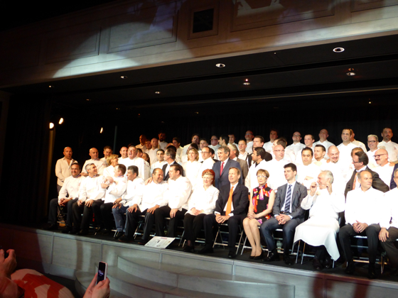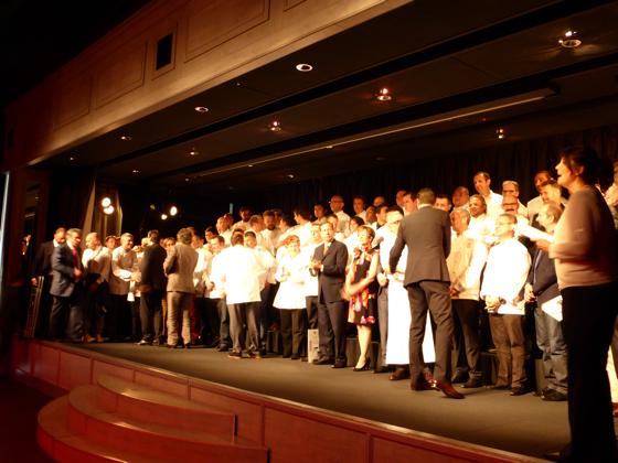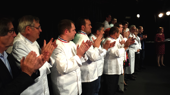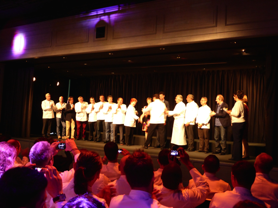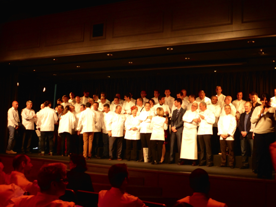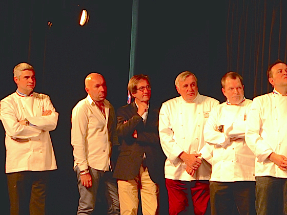 Les chefs trois étoiles Michelin sont ensuite invités à rejoindre la scène, rejoins par les chefs Olivier Roellinger et Jacques Pourcel.
