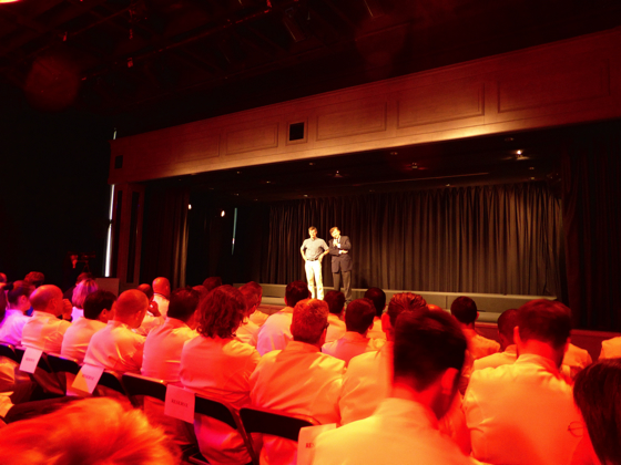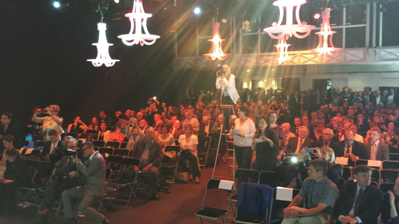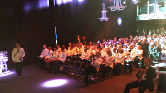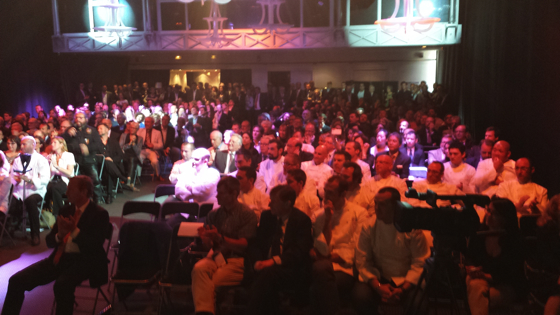 Les chefs ont pris place au devant de la salle, tous identifiables vêtus de blanc, les festivités vont pouvoir commencer.