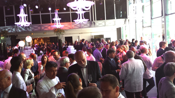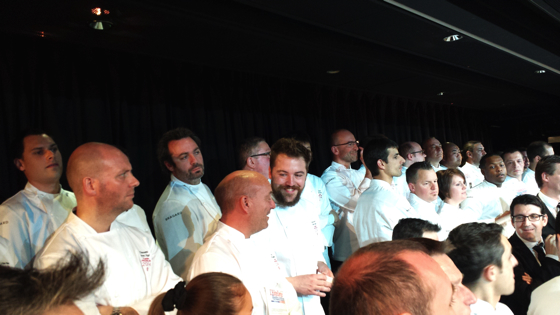 Les chefs se pressaient dans cet établissement dédié aux réceptions, en cuisine le traiteur Potel & Chabot avec à sa tête le chef Jean-Pierre Biffi. Bragard, qui habille la profession, avait fourni les vestes de cuisine qui pour la première fois affichent directement les étoiles en broderie sur les vestes. Une première dans l’histoire du Michelin, jusqu’à présent Michelin n’acceptaient pas que les chefs affichent leurs étoiles dans leur communication.