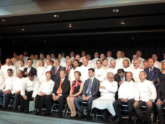 C’est ce lundi que le Journal de L’Hôtellerie Restauration recevait au Pavillon Gabriel à Paris, l’ensemble des nouveaux étoilés au Guide Michelin 2014. Le gratin de la cuisine française s’était donné rendez-vous pour cet évènement annuel qui met à l’honneur les chefs de cuisine.
