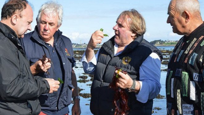 Gérard Depardieu a poursuivi, hier, son périple gastronomique en pays de Morlaix. Entre une dégustation d’algues à Roscoff (ci-contre) et la rencontre avec un producteur de cidre à Guimaëc, l’acteur a répondu à quelques questions au château du Taureau. Avec son franc-parler habituel.