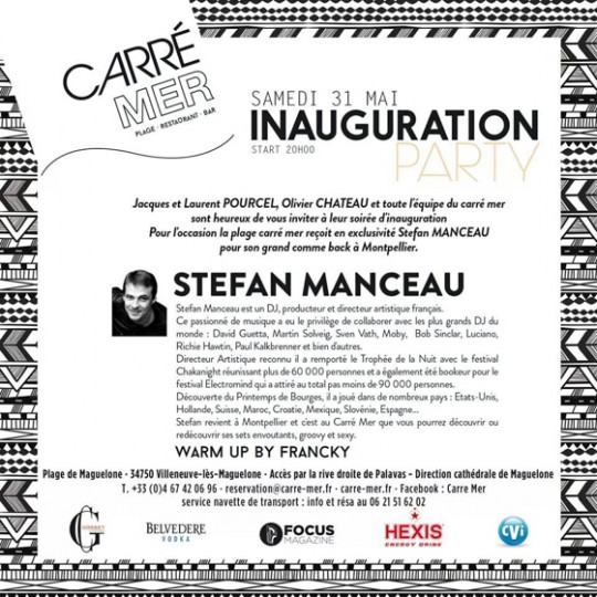 Warm Up avec Francky aux platine, pour suivre Stéfan Manceau qui fait son grand retour à Montpellier après avoir collaboré avec les plus grand DJ au monde. Et c’et donc en exclusivité qu’il sera ce samedi soir sur la plage de Carré Mer à Villeneuve-Lès-Maguelonnes.