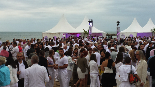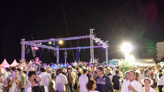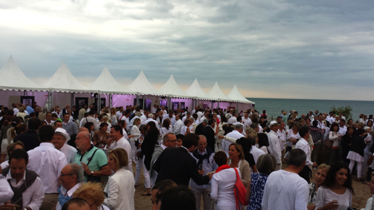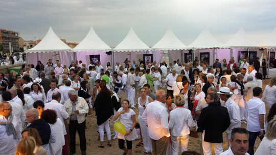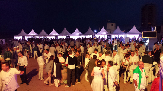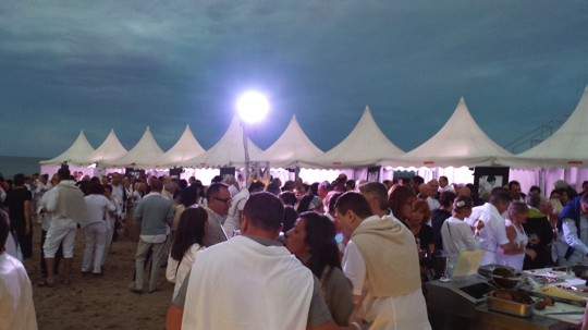 C’est donc sur le sable face au casino de la ville que les participants se sont retrouvés pour fêter le début de l’été, malgré un ciel menaçant et un Match de foot de l’équipe de France au Brésil, la soirée a tenu ses promesses puisque rendez-vous était donné à 20h pour une soirée blanche sous le thème de la gastronomie.