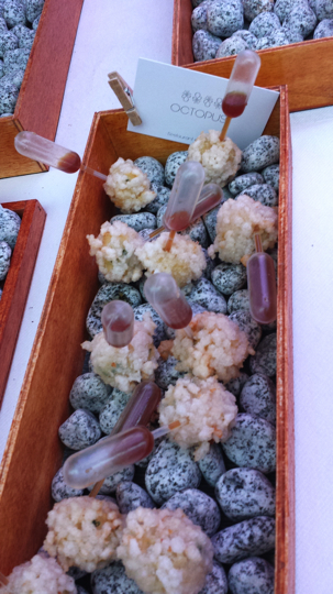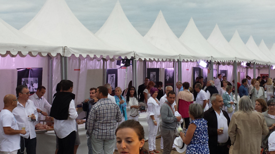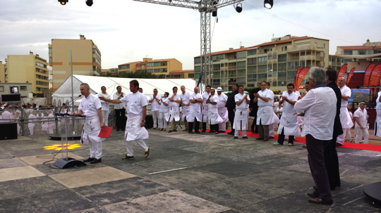 Sur la plage pas de 30 tentes de toile abritaient les chefs et les espaces de restaurations réservés aux sponsors. Chacun des chefs assurait une prestation culinaire. Les participants pouvaient aller consommer à leur choix l’ensemble des propositions de tapas réalisées par les chefs.Le service était libre et les quantités aussi.