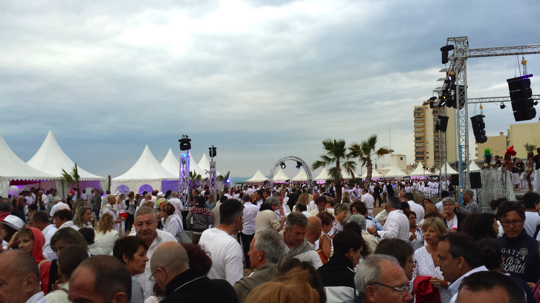 Ce dimanche 15 juin, l’association des Tables Gourmandes du Languedoc réunissant l’ensemble des tables gastronomiques de toutes la régions de Béziers produisait son Gala annuel. Depuis quelques années cet évènement qui réunit à chaque édition pas loin de 2000 personnes dans les Arènes de Béziers avait choisi de se poser sur la plage de Valras-Plage.