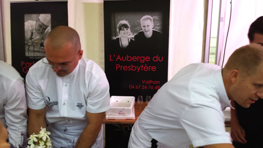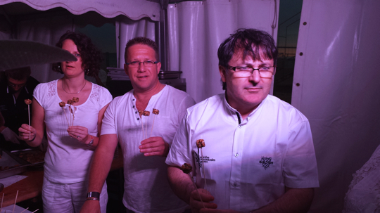 Les équipes du traiteur Au Pauvre Jacques de Pierre Augé et de la Maison de Petit Pierre étaient présentes. Pierre Augé est le chef qui a remporté en 2014 le concours TopChef. Ci-dessus Christophe Roques un ancien des équipes Pourcel.