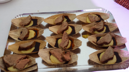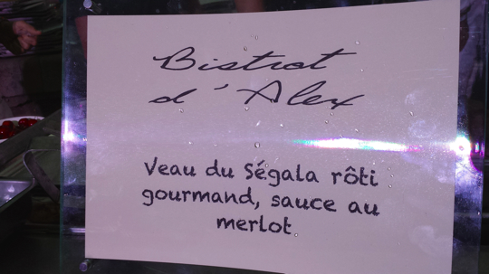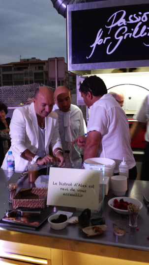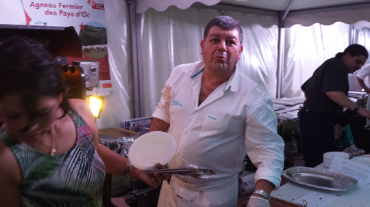 Le chef Jean-Claude Fabre, ( ancien chef des jumeaux Pourcel à Florensac chez Léonce lors de leur formation ) un des organisateurs de l’évènement, s’est beaucoup impliqué sur ce festival de cuisine. En compagnie du chef ils servaient un veau de Ségala cuit au four à bois accompagné d’une sauce au Merlot … normal le Bistrot d’Alex est situé en plein terroir du Languedoc.