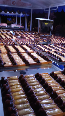La vingtaine de chefs de l’Association monta sur scène, et c’est le Président Patrick Olry du restaurant L’Ambassade à Béziers, Président de l’Association des Tables Gourmandes du Languedoc qui pris la parole pour déclarer les buffets ouverts. Les festivités du plus grand buffet du monde pouvaient démarrer.